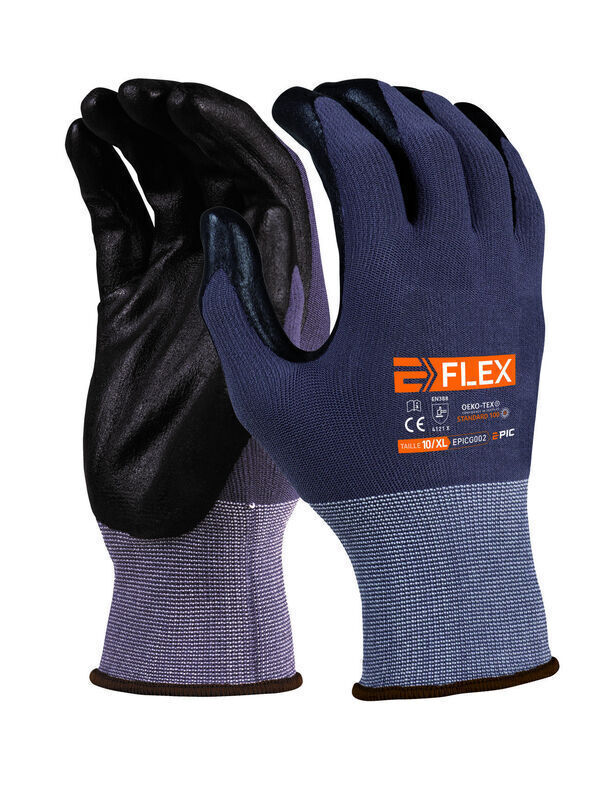 Gants support tricoté polyamide/spandex. Jauge 15. Double enduction GRIP (nitrile NBR + micromousse de nitrile) sur la paume et 3/4 dos. Poignet avec serrage élastique. | Utilisés pour les travaux en milieux très gras et très huileux.