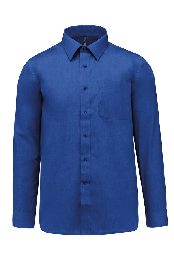 Chemise homme. Col avec pointe de col baleinée. Boutons ton sur ton. Poche poitrine côté gauche à angles arrondis. Empiècement dos double. Poignet réglable à angles arrondis avec patte de manche capucin boutonnée. 2 boutons de rappel. Bas arrondi. Finition coutures rabattues.