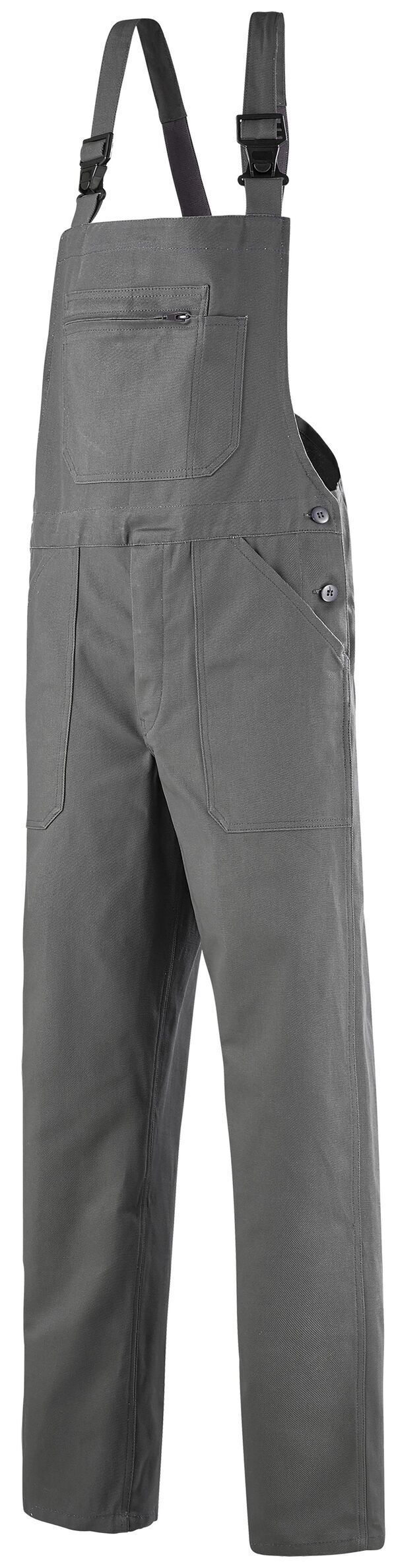 Stock : Livraison 48/72h Livraison sous 15 jours ouvrés selon disponibilités usine Cotte à bretelles. Bretelles avec élastique, réglables par boucles plastiques et maintenues au dos par boutons. Poche bavette fermée par fermeture à glissière avec compartiment stylo. Côtés fermés par boutons. Braguette fermée par boutons. Poche dos plaquée fermée par bouton. | E.J. : 86 cm.
