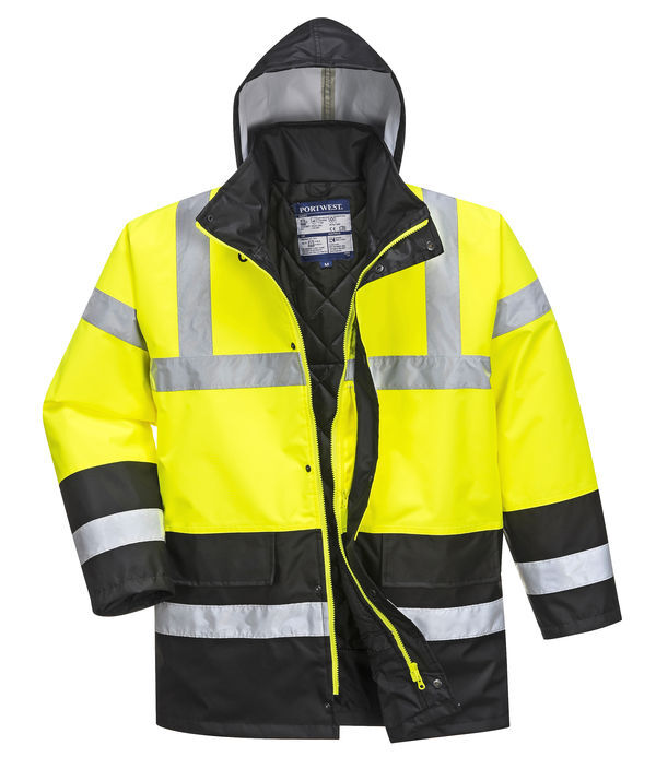Stock : Livraison 48/72h Livraison sous 15 jours ouvrés selon disponibilités usine Parka haute visibilité imperméable et matelassée. Capuche cachée dans le col. Fermeture à glissière double curseur, sous rabat à boutons-pression. 2 poches basses à rabat. Poche Napoléon. Poche intérieure. Poignets coupe-vent en tricot.
