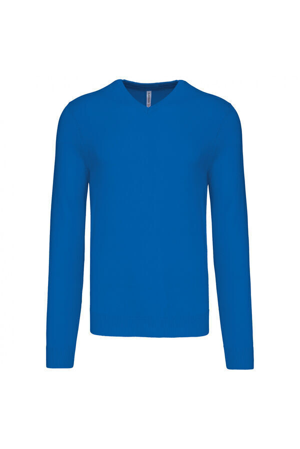 Pull homme. Col V en bord-côte en double épaisseur. Bande de propreté à l'encolure. Finition bas de manches et bas de vêtement en bord-côte. Maille fine. Coupe ajustée.